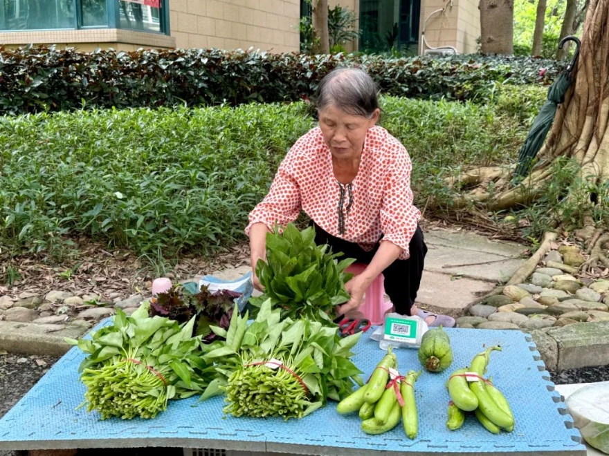 居民刘腊英将刚从菜地采摘的蔬菜仔细捆好,放置在楼下的摊位上便转身离去。“我把菜放在楼下,社区的人来买,都很自觉扫码付款或者投零钱,摆在这里很放心。”她微笑着说。五年来,这些无人菜摊始终保持“零逃单”的记录,成为社区诚信文明的生动写照。