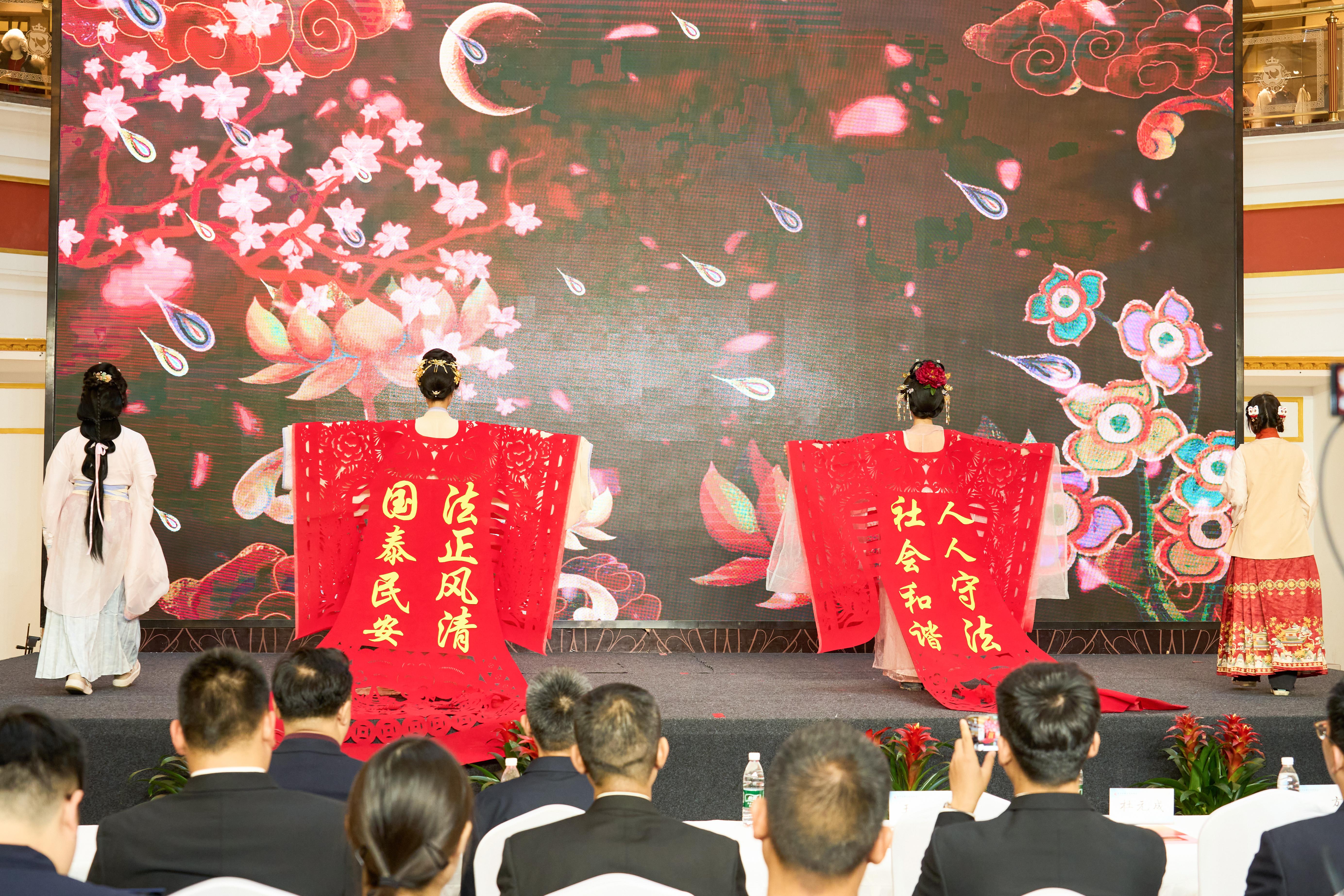 此外,全国首创的带有法治元素的剪纸汉服也在舞台上精彩亮相,使传统技艺与现代法治精神在这一刻完美结合。法治游戏区的律师摊位设置了“绿狮侠”扭蛋机,每个扭蛋里都藏着法律问题,答对者可以获得非遗作品、精美礼物和麦当劳小食,拼运气更拼知识量。